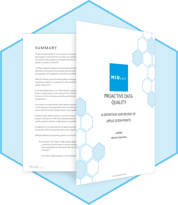 To help companies begin to execute proactive data quality, this paper describes MIOsoft’s definition of proactive data quality and the main points in the data lifecycle at which proactive data quality can be applied...